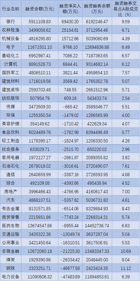 表:4月19日申萬一級行業(yè)兩融交易情況: