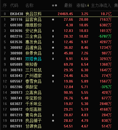具體來看,截至4月20日11:30,食品飲料概念板塊領(lǐng)漲,漲幅達(dá)3.25%。