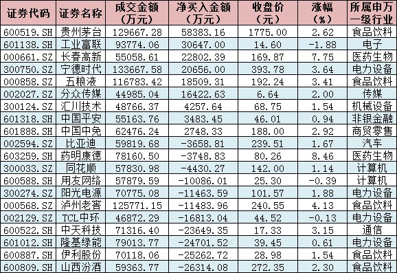 表:今日滬、深股通前十大成交活躍股交易情況:
