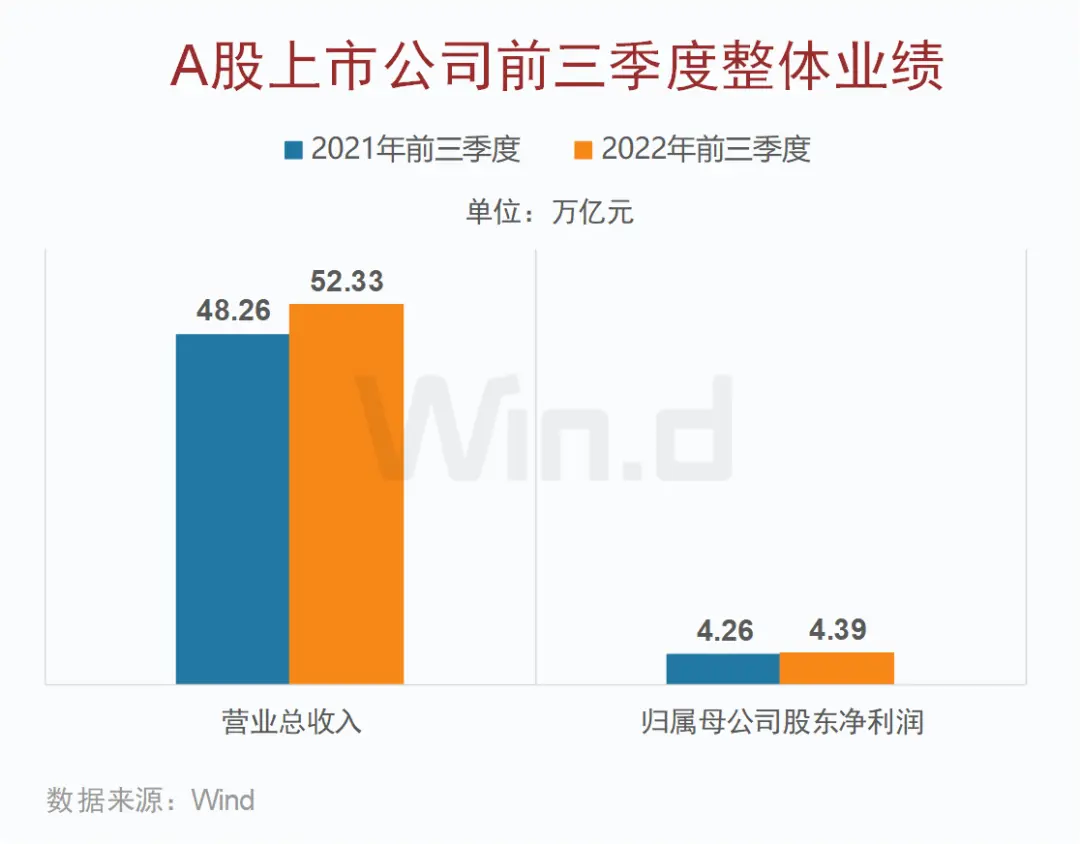 截至2022年10月30日晚,全部A股4973家上市公司,已有4963家披露2022年三季報(bào)數(shù)據(jù)。Wind數(shù)據(jù)顯示,2022年前三季度,A股上市公司合計(jì)實(shí)現(xiàn)營(yíng)業(yè)總收入52.33萬(wàn)億元,同比增長(zhǎng)8.5%;合計(jì)實(shí)現(xiàn)凈利潤(rùn)4.39萬(wàn)億元,同比增長(zhǎng)3.08%。其中,科創(chuàng)板、創(chuàng)業(yè)板和北交所營(yíng)收、凈利潤(rùn)增速均好于主板;半導(dǎo)體、能源行業(yè)齊頭并進(jìn),前三季度業(yè)績(jī)強(qiáng)勁增長(zhǎng)。...>>詳情