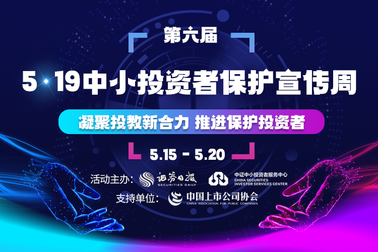 為持續(xù)做好中小投資者保護工作,在連續(xù)五年成功舉辦五屆活動基礎(chǔ)上,5月15日,由《證券日報》社與中證中小投資者服務(wù)中心發(fā)起并主辦的第六屆"5·19中小投資者保護宣傳周"活動將正式啟動。今年的活動主題是"凝聚投教新合力 推進保護投資者",將采取"線下+線上"相結(jié)合的方式,在北京、天津和上海三地進行,通過監(jiān)管部門、行業(yè)協(xié)會、中介機構(gòu)、上市公司等現(xiàn)身說法的形式展開...