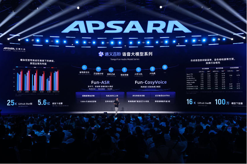 Fun-ASR基于數(shù)千萬(wàn)小時(shí)真實(shí)語(yǔ)音數(shù)據(jù)訓(xùn)練而成,具備強(qiáng)大的上下文理解能力與行業(yè)適應(yīng)性,可實(shí)時(shí)處理10多種語(yǔ)言;Fun-CosyVoice可提供上百種預(yù)制音色,適用于客服、銷(xiāo)售、直播電商、消費(fèi)電子、有聲書(shū)、兒童娛樂(lè)等場(chǎng)景。目前,通義百聆開(kāi)源模型的下載量已超5.6億。