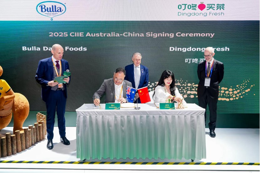 11月6日,叮咚買菜與澳洲知名乳制品品牌Bulla在進(jìn)博會(huì)上簽訂了直采協(xié)議,約定將于明年采購(gòu)至少500萬(wàn)元的乳制品商品,簽約現(xiàn)場(chǎng)由澳大利亞貿(mào)易和旅游部長(zhǎng)、參議員唐方睿見(jiàn)證。