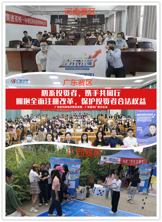 甘肅賽區(qū)走進(jìn)蘭州大學(xué)、蘭州財(cái)經(jīng)大學(xué)等8所高校,宣推賽事同時(shí)普及金融及防詐知識,加強(qiáng)互動(dòng),以寓教于樂的方式吸引更多學(xué)生注冊答題;福建賽區(qū)走進(jìn)泉州經(jīng)貿(mào)學(xué)院,普及金融知識的同時(shí)開展競賽宣傳,并通過線上渠道面向閩江學(xué)院、福建江夏學(xué)院、閩西職業(yè)技術(shù)學(xué)院開展賽事宣講;山東賽區(qū)走進(jìn)山東工商學(xué)院、山東理工大學(xué)、煙臺科技學(xué)院等高校8家,覆蓋近千人,現(xiàn)場介紹參賽規(guī)則、特色板塊、掃碼注冊、參賽流程等內(nèi)容,講解全面注冊制與投資者保護(hù)等內(nèi)容;河南賽區(qū)走進(jìn)河南科技大學(xué)商學(xué)院,面向高校學(xué)生普及資本市場知識,宣講活動(dòng)規(guī)則,并組織學(xué)生注冊參與活動(dòng);廣東賽區(qū)充分發(fā)揮經(jīng)濟(jì)排頭兵、教育資源豐富的優(yōu)勢,走進(jìn)廣州大學(xué)、暨南大學(xué)、廣東財(cái)經(jīng)大學(xué)等高校37所,覆蓋5000余人;廣西賽區(qū)走進(jìn)廣西金融職業(yè)技術(shù)學(xué)院、廣西經(jīng)貿(mào)職業(yè)技術(shù)學(xué)院、南寧職業(yè)技術(shù)學(xué)院等3家高校開展賽事宣傳活動(dòng),利用益智游戲激發(fā)學(xué)生答題興趣;寧夏賽區(qū)相繼走進(jìn)寧夏建設(shè)職業(yè)技術(shù)學(xué)院、寧夏財(cái)經(jīng)職業(yè)技術(shù)學(xué)院、北方民族大學(xué)等多所高校,開展系列活動(dòng)9場,吸引1600余名高校師生的熱情參與;廈門賽區(qū)機(jī)構(gòu)3次走進(jìn)廈門理工學(xué)院,借助招聘會向理工學(xué)院學(xué)生發(fā)送活動(dòng)宣傳單,積極推進(jìn)學(xué)生參加股東來了答題活動(dòng);青島賽區(qū)共舉辦5場推廣活動(dòng),通過發(fā)放宣傳手冊、張貼宣傳海報(bào)等方式,系統(tǒng)講解投資者權(quán)利與義務(wù)等內(nèi)容,并與師生互動(dòng)交流。