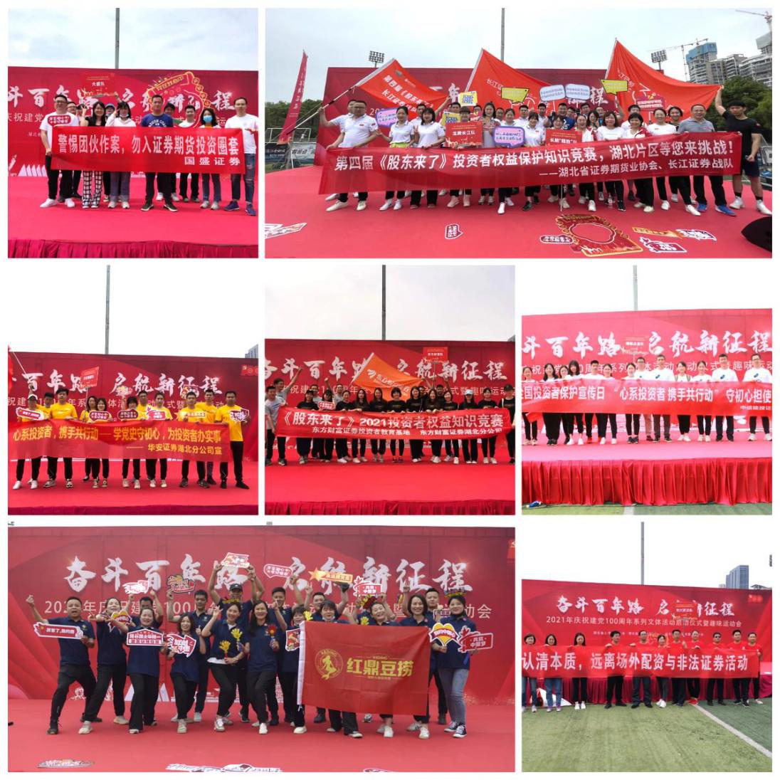 由投服中心與廣東、四川、湖北、內(nèi)蒙古、海南、西藏證監(jiān)局聯(lián)合主辦的《股東來了》2021投資者權(quán)益知識(shí)競賽正如火如荼開展。日前,《股東來了》2021湖北片區(qū)通過體育文化活動(dòng),集中宣傳黨的歷史和新時(shí)代的科學(xué)主張,搭建會(huì)員合作交流之橋,湖北省證券期貨業(yè)協(xié)會(huì)聯(lián)合湖北省上市公司協(xié)會(huì)、湖北省證券投資基金業(yè)協(xié)會(huì)在武漢江灘足球場成功舉辦2021年慶祝建黨100周年系列文體活動(dòng)啟動(dòng)儀式暨《股東來了》2021湖北片區(qū)趣味運(yùn)動(dòng)會(huì)。來自省內(nèi)證券公司、上市公司、基金公司以及湖北證監(jiān)局、協(xié)會(huì)的41支代表隊(duì),共計(jì)550余人參與本次活動(dòng)。