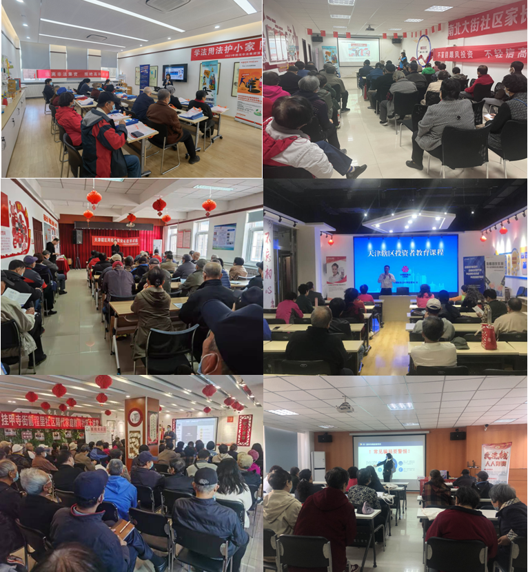 此階段宣傳活動(dòng)以河西區(qū)各街道黨群服務(wù)中心及居家養(yǎng)老服務(wù)中心為工作圓心,以點(diǎn)帶面,從線到片,形成區(qū)域效應(yīng)。通過(guò)懸掛宣傳條幅、樹立宣傳易拉寶、張貼宣傳海報(bào)等方式營(yíng)造宣傳氛圍;通過(guò)專業(yè)講師授課、發(fā)放宣傳彩頁(yè),播放防范非法集資視頻等方式開展宣傳,引導(dǎo)大家熟知正確投資理財(cái)相關(guān)常識(shí),幫助廣大群眾識(shí)別投資理財(cái)常見誤區(qū),樹立正確投資理財(cái)觀念,提高風(fēng)險(xiǎn)防范意識(shí)和能力。
