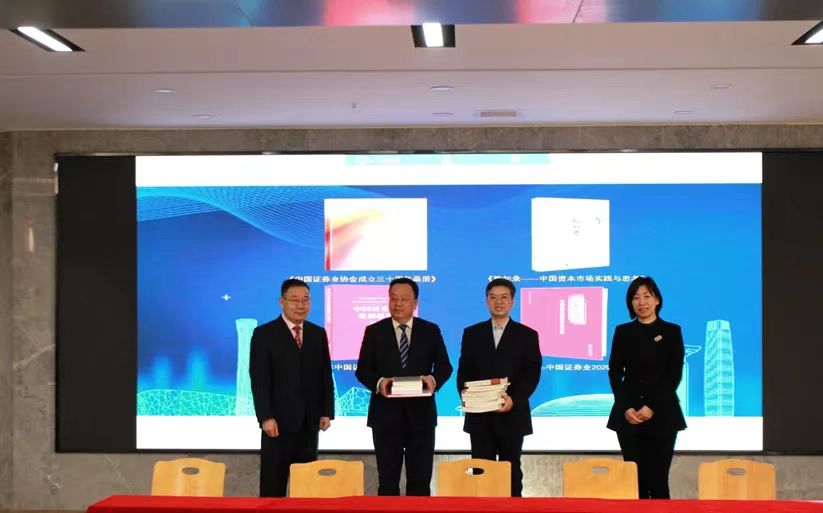 簽約儀式后,安青松書記代表中國(guó)證券業(yè)協(xié)會(huì)、時(shí)建中副校長(zhǎng)代表中國(guó)政法大學(xué)雙方互贈(zèng)圖書。