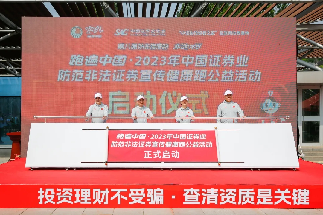 為貫徹落實(shí)黨的二十大“依法將各類金融活動(dòng)全部納入監(jiān)管”及《關(guān)于依法從嚴(yán)打擊證券違法活動(dòng)的意見》《關(guān)于開展2023年防范非法證券期貨宣傳活動(dòng)的通知》有關(guān)要求,在中國證監(jiān)會(huì)市場監(jiān)管二部指導(dǎo)下,中國證券業(yè)協(xié)會(huì)聯(lián)合中國田徑協(xié)會(huì)、“中證協(xié)投資者之家”互聯(lián)網(wǎng)投教基地于2023年5月15日在京舉行了“跑遍中國·2023年中國證券業(yè)防范非法證券宣傳健康跑公益活動(dòng)”啟動(dòng)儀式。全國政協(xié)委員、中國證監(jiān)會(huì)市場二部一級巡視員劉云峰,中國證券業(yè)協(xié)會(huì)副會(huì)長孟宥慈,中國田徑協(xié)會(huì)產(chǎn)業(yè)發(fā)展部部長高山,中國銀河證券執(zhí)委會(huì)委員、合規(guī)總監(jiān)、首席風(fēng)險(xiǎn)官梁世鵬等領(lǐng)導(dǎo)出席啟動(dòng)儀式。