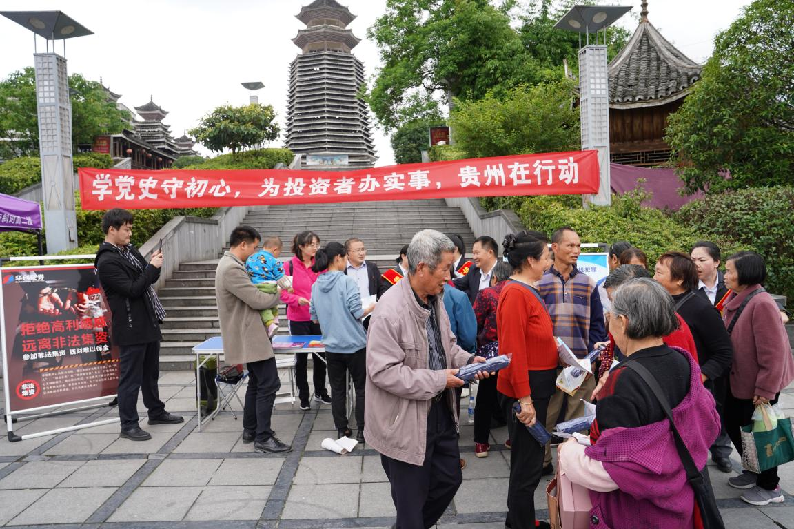 當(dāng)天下午,宣講團(tuán)一行走進(jìn)黎平縣休閑廣場(chǎng),開(kāi)展投教宣傳近社區(qū)活動(dòng)。宣講團(tuán)搭起帳篷、展臺(tái),開(kāi)展“學(xué)黨史守初心,為投資者辦實(shí)事,貴州在行動(dòng)”打擊非法集資主題宣傳,面對(duì)紛紛前來(lái)咨詢(xún)的居民,貴州證監(jiān)局有關(guān)負(fù)責(zé)同志和監(jiān)管干部、華創(chuàng)證券凱里中心營(yíng)業(yè)部總經(jīng)理巫寧也紛紛加入宣傳隊(duì)伍,拿起宣傳折頁(yè)為現(xiàn)場(chǎng)民眾答疑解惑,向他們介紹非法集資活動(dòng)的危害,引導(dǎo)他們要理性投資,切勿受高利誘惑、掉進(jìn)非法集資陷阱。