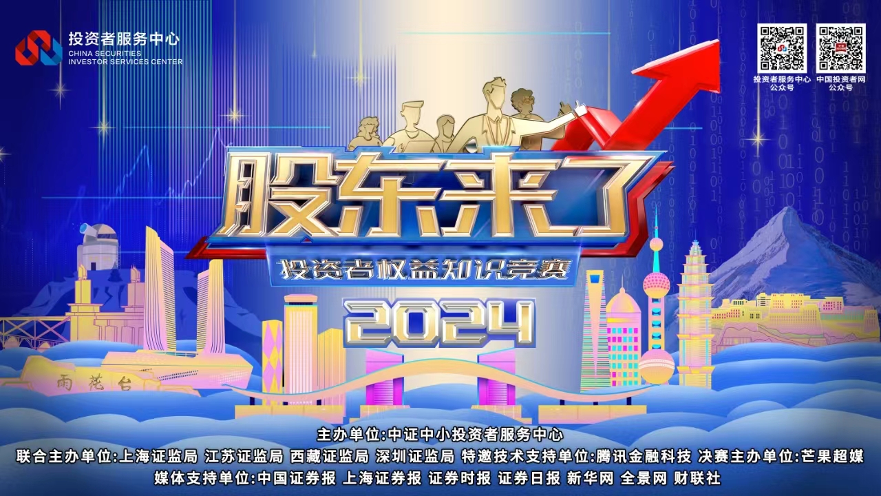 5月15日,《股東來了》(2024)投資者權(quán)益知識競賽正式啟動。《股東來了》(2024)由中證中小投資者服務(wù)中心(簡稱投資者服務(wù)中心)聯(lián)合上海、江蘇、西藏、深圳四地證監(jiān)局攜手騰訊集團、芒果超媒共同舉辦。[詳細]